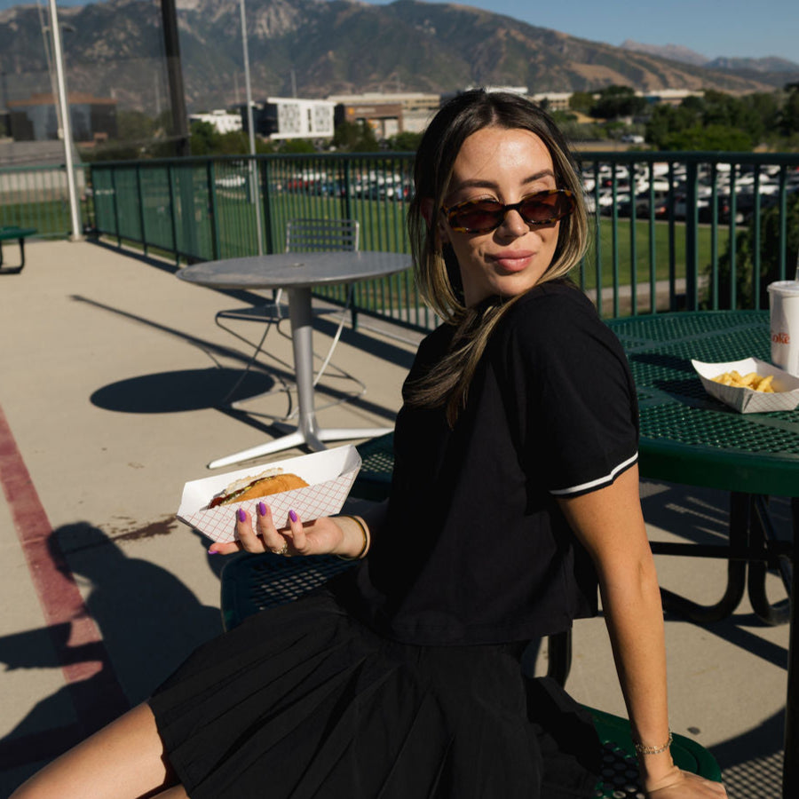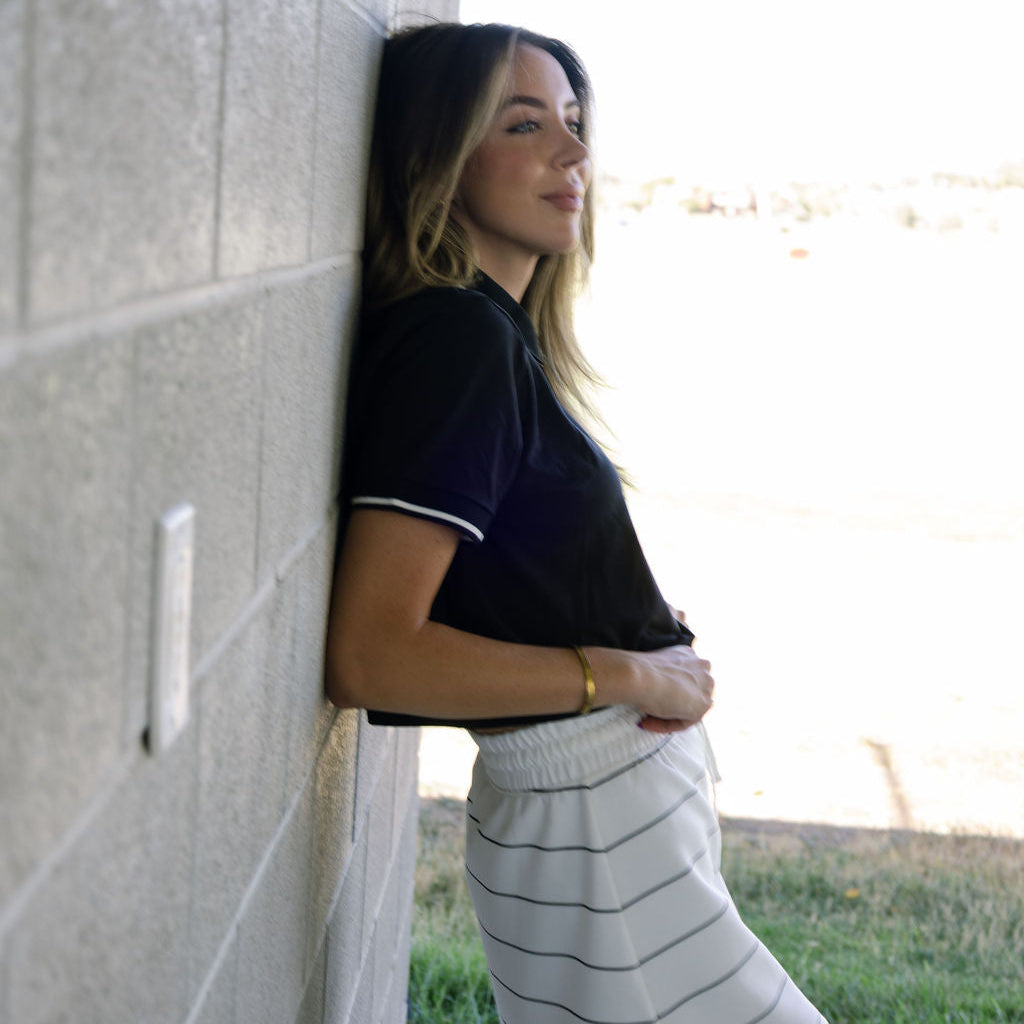 Our best selling polo! Made from the most buttery soft fabric, slightly cropped with classic striped detail for the perfect staple you'll want i every color! Runs a bit on the smaller side so size up if in between sizes or for a more relaxed fit!