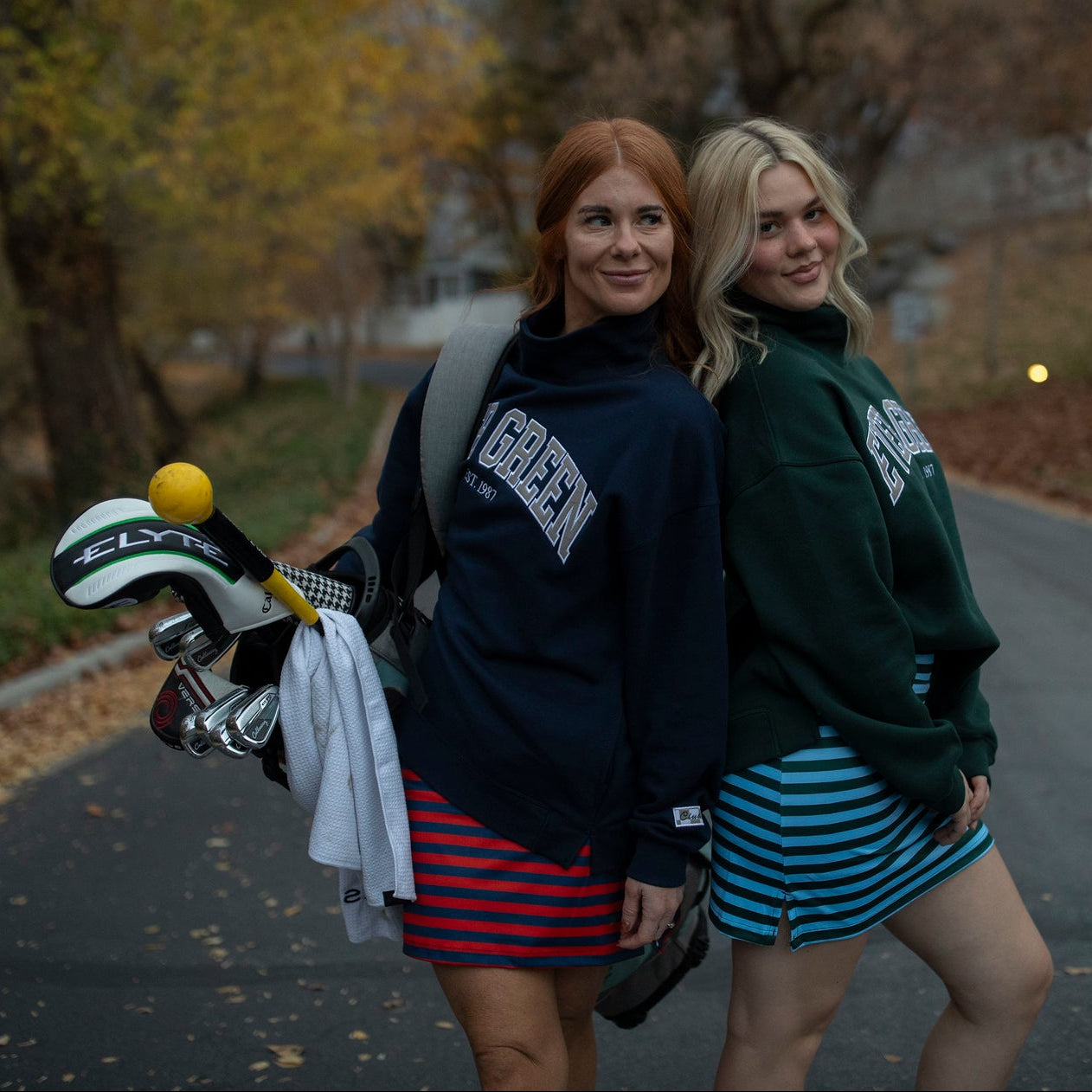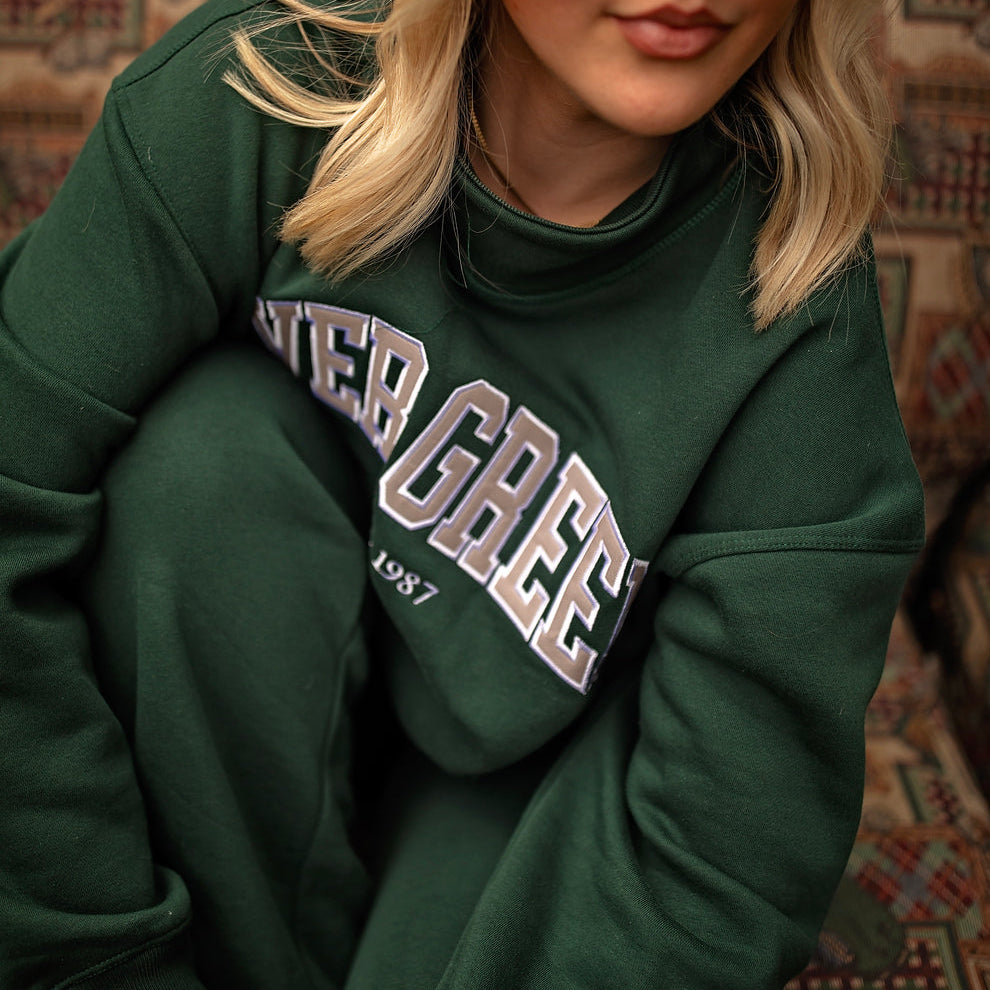 Stay cozy and on trend in our EG exclusive mock neck sweatshirt. With a slightly oversized fit, custom embroidered details and side pockets, It's the sweatshirt of the season! Wear on it's own or with the matching wide leg sweatpants!
